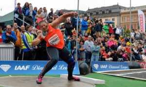 The Stockholm Bauhaus Athletics meeting began this evening with the women’s shot put held in the Kungstradgarden in the city centre, only metres away from the Parliament building where the IAAF was founded in 1912, following the Stockholm Olympics.